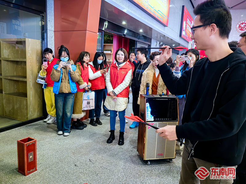 火鼎公婆民俗表演吸引了不少旅客驻足观看。东南网记者 谢玉妹 摄 东南网2月23日讯(本网记者 谢玉妹)2月23日,元宵佳节前夕,“我们的节日·元宵”——“龙行龘龘 喜闹元宵”文明实践主题活动在泉州交发集团新时代文明实践基地举行。 在人来人往的泉州动车站出站口,伴随着喜庆的音乐,泉州特色民俗项目“火鼎公婆”开启了生动有趣的表演,吸引了不少到站旅客驻足观看。现场,做花灯、猜灯谜、品元宵、投壶、听南音……穿着红马甲的志愿者们正有条不紊地组织旅客们体验各类项目,丰富多彩的元宵活动让人应接不暇,节日氛围十分浓厚。 “这些活动都很有闽南特色,还能弘扬传统文化,很有意义!”来自江西新余的葛女士今日特意带着母亲和女儿来泉州旅游,一出站就感受到了来自泉州的温暖,“我觉得很热闹,小孩子也很喜欢,做灯笼、吃元宵,还可以学习到一些元宵节的传统习俗。” “刚才看了‘火鼎公婆’表演,很有泉州特色、很精彩,感觉泉州的本土文化宣传做得很好!”江西人胡女士的父母在泉州定居,今天她特意带着孩子来泉州与父母共度元宵佳节。“今天玩了投壶、做了花灯、猜了灯谜、吃了汤圆,还看了表演,在泉州很有过节的氛围!”胡女士希望,此类活动可以多多举办,让孩子有机会近距离感受中国传统文化。 “元宵节是中国的传统节日,希望能借助活动营造节日氛围,宣传泉州非遗和海丝文化。”据泉州市能源发展集团有限公司副总经理黄志阳介绍,除了形式多样的非遗表演和节日活动外,主办方还组织了不少志愿者帮助进出站的旅客,为他们送去节日的问候和暖心的服务,践行独属于泉州的文明新风。 此次活动由泉州市委文明办、泉州交发集团主办,丰泽区委文明办、泉州能源发展集团、泉州市启航社会工作服务中心承办。活动不但丰富了企业职工的精神文化生活,增强归属感和幸福感,同时也为泉州动车站的往返旅客营造元宵节佳节喜庆、祥和、其乐融融的节日氛围。