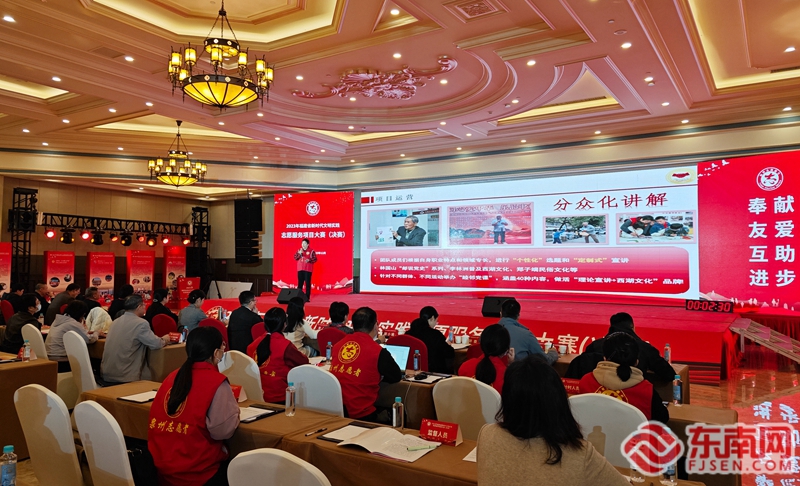 2023年福建省新时代文明实践志愿服务项目大赛决赛在泉州举行,图为志愿服务项目路演现场。东南网记者 林杰 摄 这一年来,全市常态化组织开展志愿服务主题活动,推动志愿者广泛参与社会治理,共有4900多支志愿服务队伍、超13.5万志愿者参与抗击台风“杜苏芮”和灾后恢复重建工作,服务群众达270万余人,成为抗台抢险救灾不可或缺的重要力量。积极培育先进典型,1名志愿者和1个项目获全国学雷锋志愿服务“四个100”先进典型,9个志愿服务项目获全省大赛金、银、铜奖,在全省设区市中金奖数最多、获奖总数居第二位,13个个人(单位、项目)获评全省“五个最美”先进典型。完成泉州市志愿者协会换届工作,举办志愿服务骨干培训班,精心筹备全省新时代文明实践志愿服务项目大赛决赛。 |