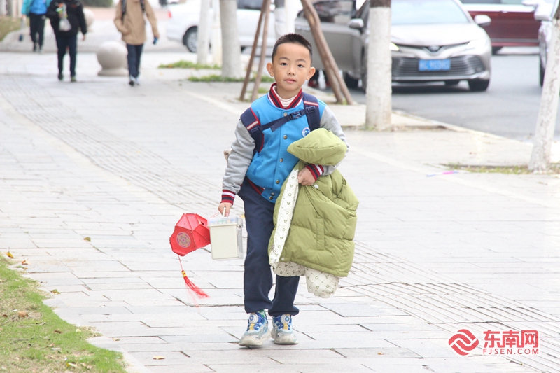 小学生也带着自己的元宵花灯作品来学校报道。东南网记者 黄雨昕 摄