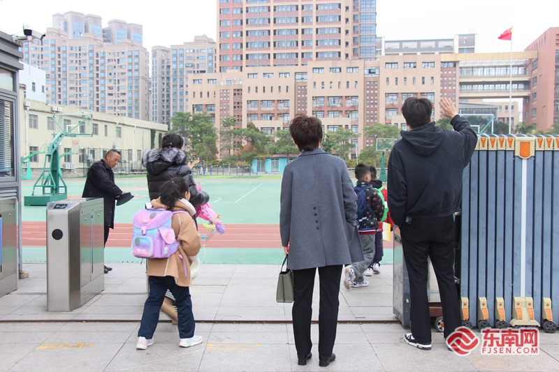 家长依依不舍地目送孩子进校园。东南网记者 黄雨昕 摄