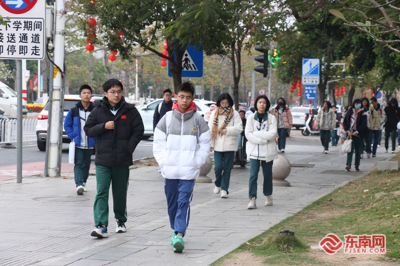 开学第一天的中学生们正步履匆匆前往校园。东南网记者 黄雨昕 摄