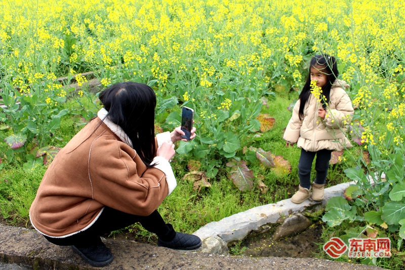 游客在油菜花田拍照留念。东南网记者 薛逸群 摄