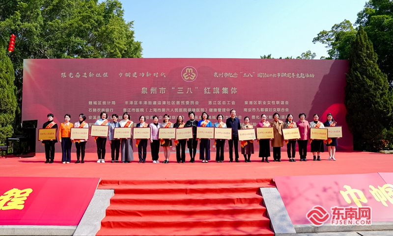 受表彰的“三八”红旗集体。泉州市妇联 供图 东南网3月8日讯(本网记者 谢玉妹 实习生 林源斌)3月8日,“跟党奋进新时代 巾帼建功新时代”泉州市纪念“三八”国际妇女节114周年暨2024巾帼创业市集启动仪式在泉州府文庙前广场举行。 活动现场命名表扬了113个市级“三八”红旗手和42个“三八”红旗集体。泉州市农信联社、农商银行为福建安溪县冠和茶业有限公司、福建省晓博文化创意有限公司等8家巾帼示范基地和巾帼文旅项目授信,授信总额达1亿元。 活动现场还同时启动泉州市2024巾帼创业市集。作为泉州市纪念“三八”妇女节114周年主题活动之一,巾帼创业市集以“泉家享乐购 巾帼来相助”为主题,共汇聚来自特色美食、非遗新生、大师工坊、家居生活、巾帼青创等10多个领域70个巾帼优秀创业企业和商家,充分展示泉州市巾帼创业的实力和魅力。 市集现场还开展“购物享优惠”、泉州特色节目专场文艺演出、名家书法现场创作免费赠送、茶艺香道展演展示、特色产品 “一元抢购”等多场惠民活动,为广大市民献上一场具有闽南韵、海丝风 、时尚潮、文化范的“她生活”盛宴。 活动上,泉州市妇联主席骆春玲希望,全市广大妇女坚定理想、振奋精神、提升素质,以更为强烈的历史自觉、更加昂扬的精神面貌,为奋力推进中国式现代化的泉州实践贡献巾帼力量。希望全市广大妇女工作者进一步转变工作作风,提升政治能力、思维能力、实践能力,不断争优争先争效、担当作为。各级妇联要聚焦广大妇女和家庭的所需所想所盼,竭力为城乡妇女创业创新提供更加广泛、更加有效的载体和平台,为广大家庭提供更为贴心、更可持续的服务,为妇女儿童营造更加平等、更具友好的发展环境,努力打造妇女群众信赖的温暖之家。