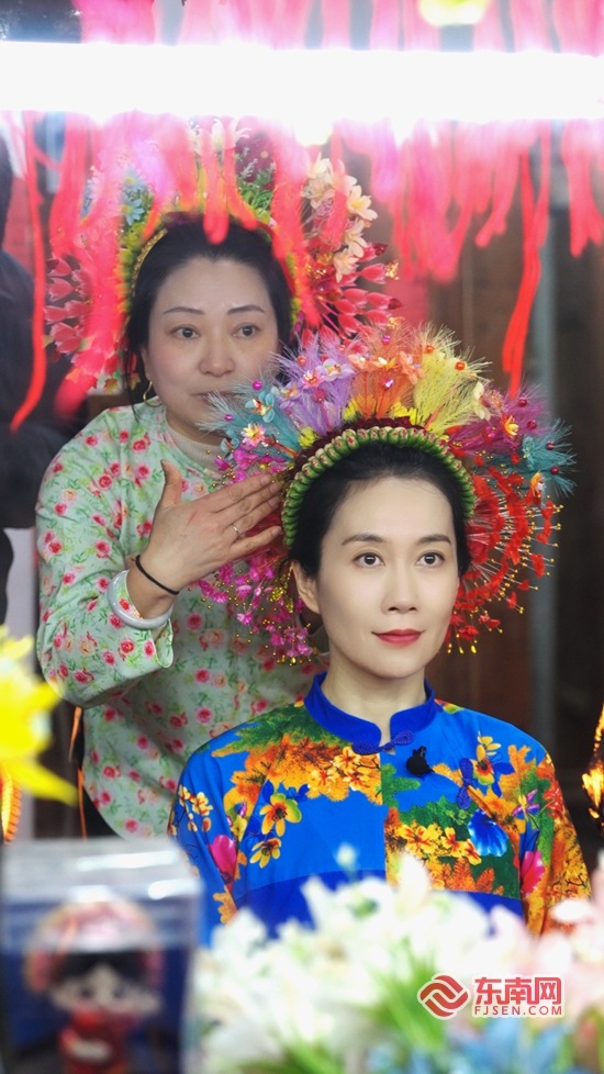 温峥嵘正在体验“簪花围”。丰泽区委宣传部 供图 东南网3月12日讯(本网记者 黄雨昕 通讯员 郑铭圣)“海风千里,花开满髻”,在丰泽区蟳埔村的街道巷陌处处是头戴簪花的各地游客,繁花似锦、百花争妍。第一次来泉州拍摄电视剧的演员温峥嵘便爱上了这流动的花海,“我姑妈也在泉州,上次看到姐姐发朋友圈就觉得‘簪花围’好美,这次刚好带着爸爸一起来探亲,也想体验一下。” 走进蟳埔渔家老院子,映入眼帘的便是满屋的花,院子中的老阿嬷告诉记者,爱美,是蟳埔女对美好生活的向往。挑选一件蓝色传统“大裾衫”,手巧的蟳埔阿姨将温峥嵘的头发盘成海螺状,用骨笄插在髻心上,拿三串时令小鲜花环绕圆髻戴上,再在四周细细插上一圈不同颜色的簪花,在倾听蟳埔村民俗文化的过程中,温峥嵘的父亲还细心地帮她戴上金梳子。 “好香,好美,在花的海洋里我好像即将要出嫁的海的女儿”, 独特的渔女习俗让她不禁捧起几簇鲜花,“原来蟳蜅女的头饰蕴含着这么多的故事,希望以后有机会再来这里拍电视剧,就在这里拍簪花,拍渔家女的故事。” |
