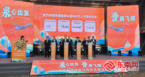 签约仪式。东南网记者 陈诗婷 摄 东南网3月20日讯(本网记者 陈诗婷)今日,由泉州晋江国际机场主办的“‘泉’心出发 ‘晋’情飞翔”2024年泉州市民航与经济发展交流会举办。 会上,“宋元中国·海丝泉州”号彩绘飞机惊艳亮相。作为首架展示泉州城市形象的彩绘飞机,其将泉州的城市LOGO喷绘于机身之上,向所到之处的旅客展示最闽南、最国潮的泉州独特文化魅力,打造流动的泉州“空中名片”。“宋元中国·海丝泉州”号彩绘飞机的亮相,标志着泉州城市形象宣传推广迈入了新阶段,将让泉州这座世遗之城、烟火之城、奋斗之城更大步地“走出去,引进来”,再续“涨海声中万国商”的繁荣盛景。 据了解,为积极打造泉州空中门户,助力地方经济发展,泉州晋江国际机场今年定下了完成航班起降6.75万架次、旅客吞吐量850万人次、货邮吞吐量8万吨的年度工作目标。交流会上,机场与厦门航空、深圳航空、西部航空举行了“全力冲刺年旅客吞吐量850万人次”签约仪式,联手福建陆地港集团有限责任公司、石狮市友谊航空货运有限公司、厦门市冠航货运代理有限公司、厦门均瑶货运代理有限公司等货运企业进行“年货邮吞吐量8万吨”签约仪式,将携手完善航线网络布局,推动航空货运发展。 在“临空经济与高质量发展”主题沙龙环节上,各参会单位积极发言探讨,共谋“泉州市民航与经济发展”新蓝图,为泉州发展新质生产力注入强大动力。 记者在现场了解到,3月31日起,中国民航将开始执行2024年夏秋航季航班计划,届时泉州晋江国际机场将有31家国内外航空公司投入运营,新开或恢复克拉克、三亚、济宁、连云港、黔江等多个国内外航点,通航国内外航点达68个,每周计划执行进出港航班2107架次。 活动过程中,泉州晋江国际机场开展了换季航班推介活动,以及物流、商旅、置业、食品、投资五大产业板块等非航业务的招商推广;厦航、深航、西部航等航空公司分别介绍了新航季在泉的航线情况;济宁市文旅局带来济宁城市宣传推介,共同探索更多泉州民航与区域经济高质量发展的新思路、新举措。 目前,泉州晋江国际机场正在加紧推进新一轮的扩能改造工程,预计2024年全部竣工投用,届时将满足年旅客吞吐量1200万人次、货邮13万吨,年客机起降近10万架次的保障需求。机场将继续与社会各界共同努力,加强互联互通,不断擦亮“宋元中国·海丝泉州”城市名片,充分发挥机场作为城市门户和窗口,以实际行动助力泉州文旅经济蓬勃发展。 |
