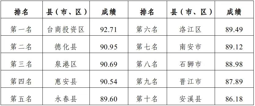 按照泉州市委、市政府的工作部署和泉州市委振兴办的工作要求,紧扣乡村全面振兴,2月份泉州市考评中心围绕农村人居环境整治提升五年行动,深化拓展“深学争优、敢为争先、实干争效”行动部署,助力宜居宜业和美乡村建设,对各县(市、区)城乡人居环境整治工作情况开展考评。下面看看2月份各县(市、区)考评情况: 共发现问题4270处 对10个县(市、区)145个乡镇抽评252个村居、117段道路、5个工业区、39段海(江)岸带、18座农村公厕、10段高速公路出入口县域连接线,共发现问题4270处,其中村居2879处、道路948处、海(江)岸带258处、农村公厕110处、高速公路出入口县域连接线75处。 台商投资区喜提第一