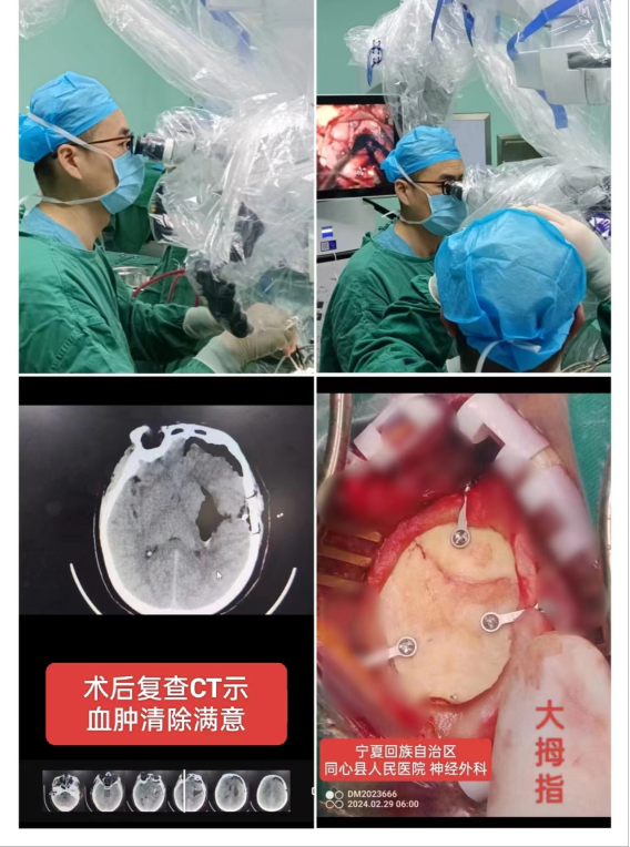 近日,宁夏回族自治区同心县人民医院神经外科在泉州市第一医院神经外科“组团式”帮扶专家黄锦聪副主任医师的帮助下,应用最新配置手术显微镜成功为一名高血压脑出血患者施行了“经左颞直切口‘锁孔’入路微骨窗开颅显微镜下脑内血肿清除术”。手术为该县首例显微神经外科手术,标志着同心县医院神经外科从传统手术阶段跨越式地迈进了显微神经外科时代,大大提高了出血性脑卒中的诊疗水平,为实现“大病不出县”的国家战略打下了坚实的基础。