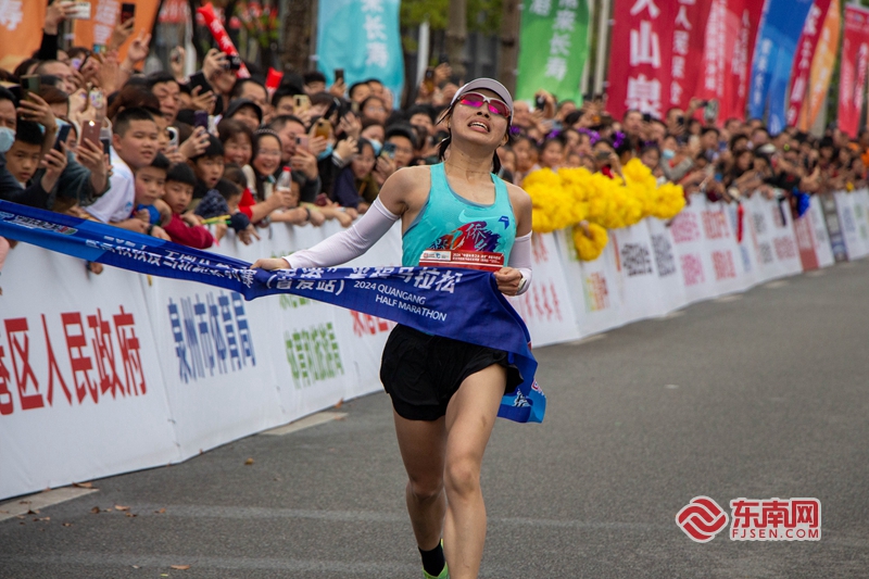 半程马拉松女子组冠军冲线时刻。林梦琳 摄