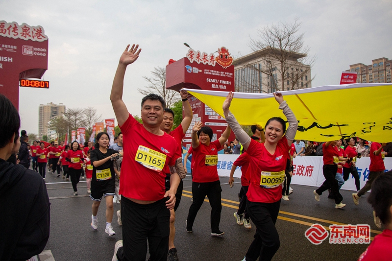参赛运动员挥手回应呐喊加油的观众。林梦琳 摄