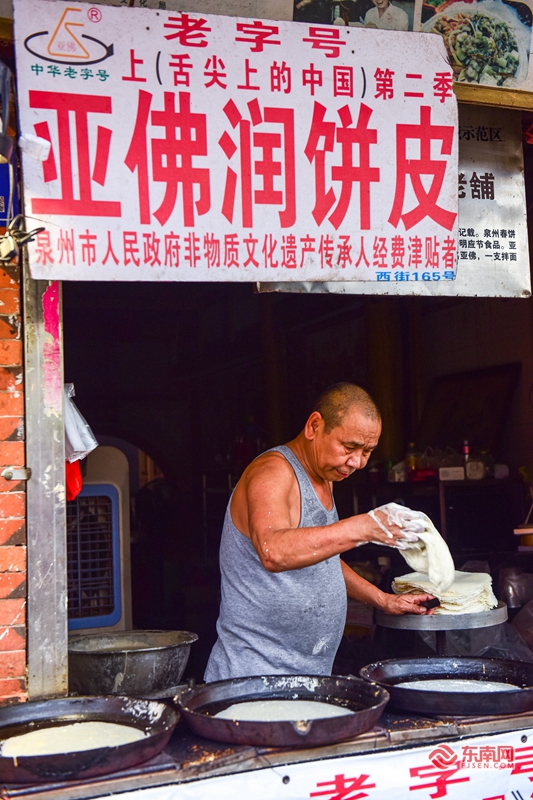 老板正在现场制作润饼皮。东南网记者 林婕 摄