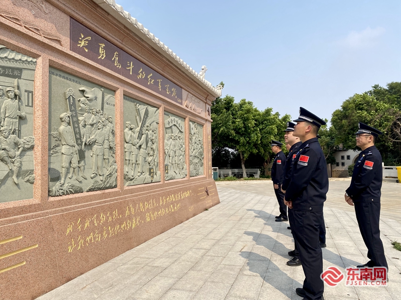 在清明节来临之际,肖厝边检站执勤二队到惠安武装暴动屿头山战斗纪念碑开展清明祭奠英烈活动,期间全体民警通过鞠躬默哀、瞻仰英雄纪念碑、敬献鲜花等方式,向革命先烈表达敬意、寄托哀思。