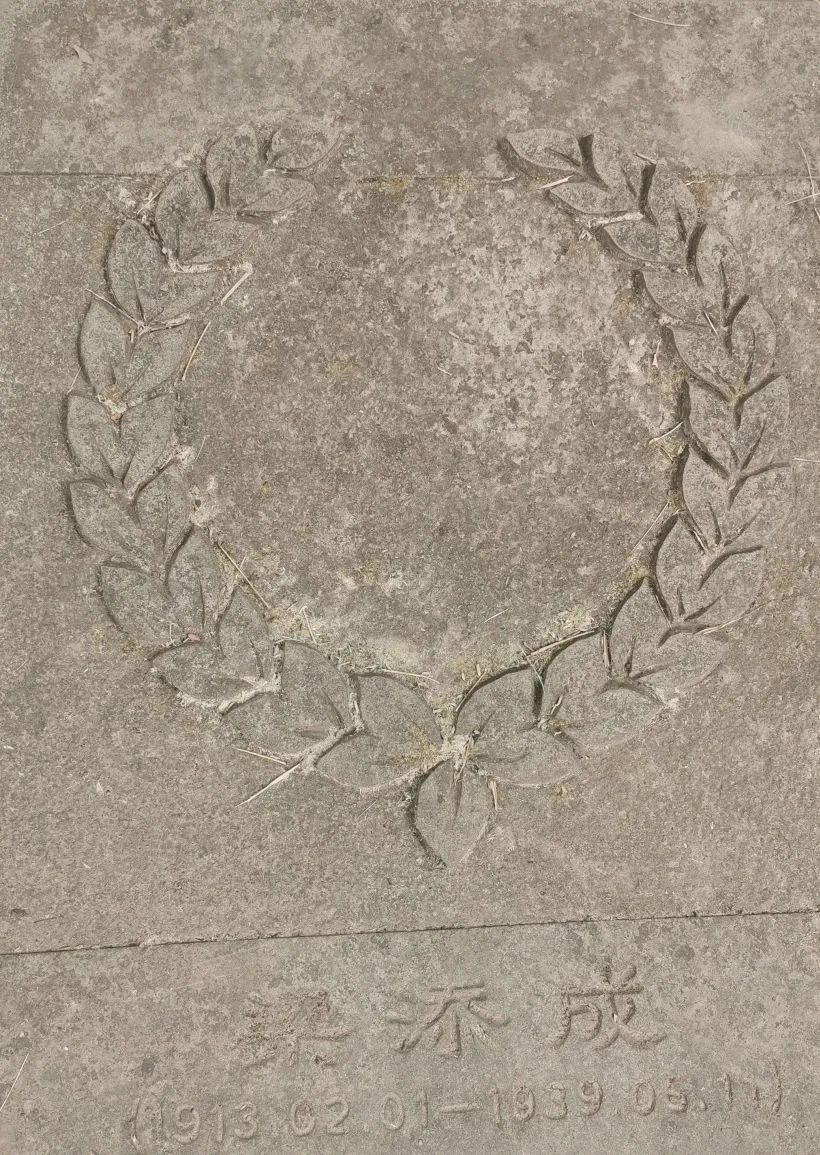 位于重庆南山空军抗战纪念园内的梁添成烈士墓碑 1943年7月23日,为表彰梁添成的英勇抗战精神,重庆广阳坝机场被命名为梁添成机场。 |