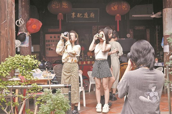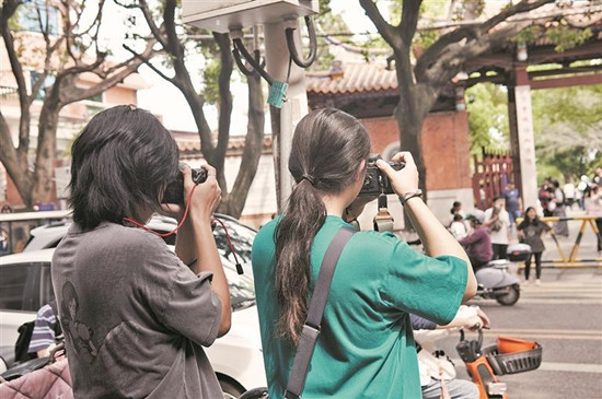在街巷中捕捉美景 (王澜 摄) 最近,常有一群手持胶片相机的年轻人,在泉州的古街巷中随心漫步。他们用脚步丈量,深入古城肌理,贴近古城呼吸。在一次次按下快门中定格画面,在慢慢冲洗出的一张张黑白相片中,感受古城独特的气质。他们说,当开盲盒式的胶片照片一点点地显现出来时,仿佛置身时空隧道,与泉州这座千年古城进行着“深度”的对话。