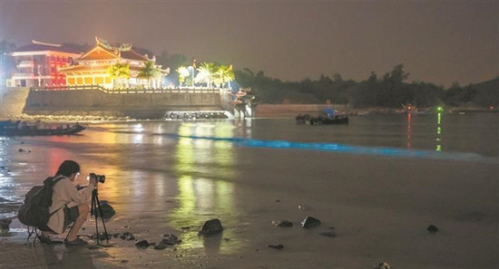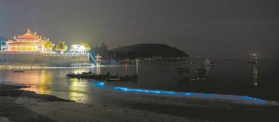 本月中旬,惠安净峰镇惠女湾海滩出现了“蓝眼泪”。(王小平/摄)