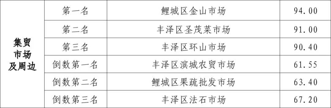 公厕考评中,90分段75座,80分段159座,70分段42座,60分段5座,60分以下4座,考评成绩在80-90分段居多,其中泉州开发区善丰路公厕、丰泽区宝山社区山后津宝路公厕、福建清源山旅游投资有限公司灵山圣墓公厕等厕容整洁,管理情况较好,成绩靠前。但部分公厕精细化管理仍不足。一是环境卫生作业质量不高,设施设备脏污、发霉等问题较多;二是设施维护管理不及时,设施设备缺失、老化、破损等;三是未设置、未及时补充厕纸、洗手液等问题较为普遍,如泉州市园林绿化中心云山绿地公厕、泉州市海峡体育中心有限公司海峡体育馆南门旁和8号门旁公厕。 集贸市场项目