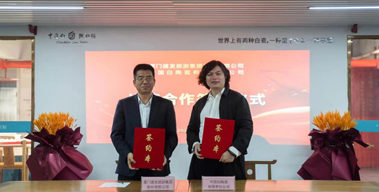 签约现场。 东南网5月1日讯 4月29日,中国白陶瓷公司与建发旅游集团在中国白总部举行战略合作协议签约仪式。此次签约,标志着双方在资源共享、产业协作、品牌共建及文化艺术交流等关键领域达成深度战略合作共识。 据介绍,中国白陶瓷公司与建发旅游集团将携手合作,共同展示和推介中国德化白瓷文创产品,通过深度合作推动陶瓷文化与旅游产业的深度融合。双方将共同打造独具特色的文化旅游产业链,向全球展示中国白瓷文化的独特魅力和创新实践的中国故事。 签约仪式上,建发旅游集团董事长张建军表示,中国白陶瓷公司与建发旅游集团的发展愿景、使命担当、文化理念高度契合,期待此次合作能够成为推动文旅融合、弘扬世界白瓷文化的典范,为中华优秀传统文化的传承与发展注入新的活力。 中国白陶瓷公司董事长陈仁海表示,中国白陶瓷公司将继续秉持“用世界名牌‘中国白’讲好中国故事”的发展理念,与建发旅游集团携手共进,共同探索陶瓷文化与旅游产业融合发展的新路径。期待与更多合作伙伴携手并进,一起推动文化产业和旅游产业的繁荣发展。 当天,签约双方共同参观了德化中国白国家用瓷特展,感受中国白陶瓷界坚持守正创新、与时俱进,以瓷纪史、反映时代精神的艺术创作特色。 |