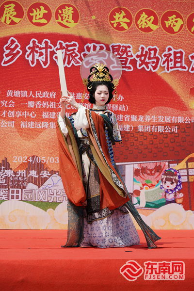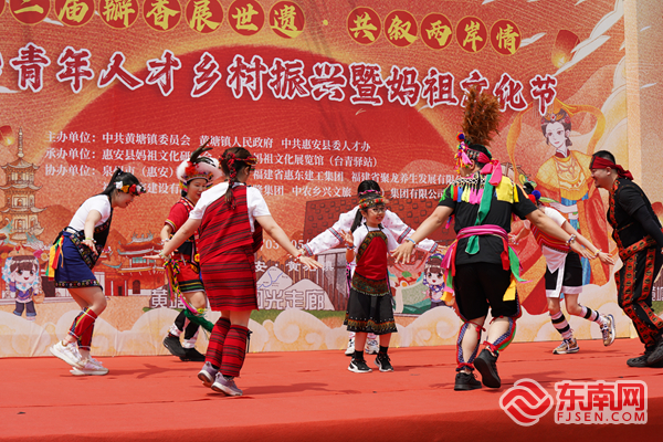 台湾青年演绎节目《阿里山的姑娘》。主办方 供图 东南网5月3日讯(本网记者 林杰 通讯员 钟静漪 潘婷婷)5月3日上午,第二届“瓣香展世遗,共叙两岸情”惠台青年人才乡村振兴暨妈祖文化节活动在惠安黄塘举行。 此次活动由惠安县黄塘镇党委、政府,惠安县委人才办主办,惠安县妈祖文化研究会、一瓣香妈祖文化展览馆承办。 开幕式上,由台湾偃月宫宫主张琪组织的台湾青年们,身着具有台湾特色的少数民族服饰,用热情的舞蹈演绎《阿里山的姑娘》,拉开了活动序幕。活动现场,扮演妈祖、九天玄女、保生大帝、财神爷、临水夫人等造型的演员登台亮相,与现场观众互动,讲解两岸同根同源的民俗文化,引发大家共鸣。 台湾青年陈羽在采访中说道:“借助文化节活动第一次来到惠安黄塘,看到这里的青山绿水,感受到当地人对于妈祖文化的传承热爱,觉得很高兴。希望在接下来的活动里互相学习,更深刻地体会到两岸一脉相连的深厚文化。”