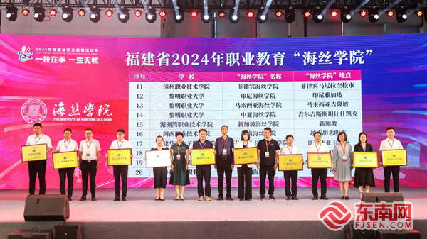 启动仪式。泉州职业技术大学 供图 东南网5月18日讯(本网记者 施远圻)5月18日,2024年福建省职业教育活动周省级主会场活动在泉州晋江举行。 据了解,自2015年起,每年5月第二周为职业教育活动周,本次活动主题为“一技在手,一生无忧”。恰逢职业教育活动周十周年,此次主会场活动选择在国家产教融合试点城市、“晋江经验”发祥地举行,是开创职教新局面、塑造职教新赛道的一次实际行动,也是福建省职业教育与产业企业、民营经济的一次近距离对话。 启动仪式上,主办方公布第一批20个“海丝学院”并授牌,这是全省职业院校积极践行“一带一路”倡议,面向“一带一路”沿线国家开展“中文+职业技能”的人才培养,打造具有福建特色的“以侨为桥,校企同行”的职教出海品牌,足迹已遍及东南亚、中亚、中东、非洲。