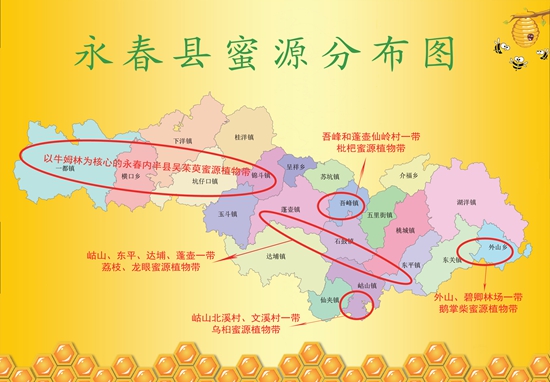 永春县蜜源分布图。永春县林业局 供图 活动现场,主办方公布了永春优质蜜源分布图,全境呈长带状,东西跨境长达84.7公里,南北宽37.2公里。分别是以牛姆林为核心的永春内半县吴茱萸蜜源植物带,岵山、东平、达埔、蓬壶一带荔枝、龙眼蜜源植物带,吾峰和蓬壶仙岭村一带枇杷蜜源植物带,岵山北溪村、文溪村一带乌桕蜜源植物带,外山、碧卿林场一带鹅掌柴蜜源植物带等五条特色蜜源植物带。 “蜜蜂要酿造好的蜂蜜,好的蜜源尤为关键!我主要是在蓬壶一带养蜂,生产冬蜜、荔枝蜜、百花蜜,因为蜜源比较好、蜂蜜品质有保障,所以有不少回头客来找我购买。”永春县蜂农林木春告诉记者,在永春县首届“农信杯”蜜王赛活动中,他的荔枝蜜也获得了金奖,他希望能有越来越多人了解永春蜂蜜,生意能越来越好! 当天,在泉州市林下经济发展推进会上,永春、德化、南安作为省级林下经济重点县,就林下经济发展作经验交流。 |