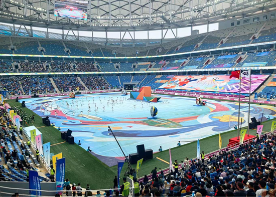 2024年国际中体联足球世界杯开幕式现场 开幕式上,伴随着千余名青少年热情洋溢的舞蹈,各国参赛队伍依次入场,运动员与现场观众频频招手致意,观众席欢呼声与掌声雷动。随后的文艺展演环节,国乐演奏、武术表演展现了中华文化历久弥新的独特韵味,花式颠球和舞蹈表演展现了青少年的蓬勃朝气,南非世界杯主题曲《Waka Waka》欢快的节奏旋律将现场热情推向高潮。 开幕式结束后,比赛正式开启。首场比赛由中国中学生男子足球三队(大连)对阵捷克中学生男子足球一队,为观众带来了一场酣畅淋漓的对决。经过激战,最终中国三队以7:2成绩取得首场大捷。