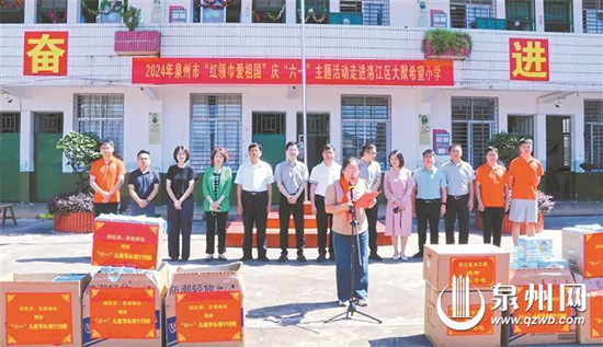 5月29日,2024年泉州市“红领巾爱祖国”庆“六一”主题活动走进洛江区河市镇溪山小学(大猷希望小学),现场向溪山小学捐赠了总价值近7万元的广播器材、户外LED屏幕、电风扇、讲台桌及图书、书包等儿童节礼物。