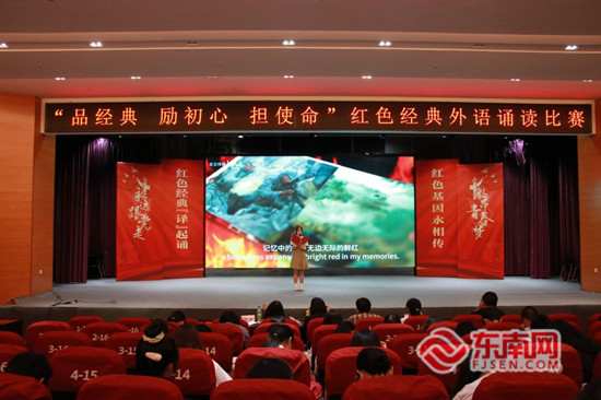 选手们用英语深情诵读红色经典。泉州师范学院 供图 东南网6月4日讯(通讯员 陈奕希 张建宇 本网记者 谢玉妹)6月3日晚上,泉州师范学院举办红色经典外语诵读比赛。这也是泉州师范学院第十七届外文活动月系列活动之一。 比赛采取随机抽题诵读与自选作品诵读的形式进行。在随机抽题诵读环节,选手们用英语深情诵读了习近平总书记的重要讲话和重要论述,带领观众们追寻领袖足迹,感悟思想伟力。在自选作品诵读环节,选手们满怀慷慨激昂的爱国热情,用外语诵读了《可爱的中国》《艰难的国运与雄健的国民》《南昌起义》等作品,讲述了一个个令人振奋而感人的红色故事、一段段可歌可泣的英雄传奇。 此前,5月16日,泉州师范学院还举办“用英语讲中国故事”比赛,选手以福建的英雄人物、特产美食、民俗风情、文化传承等为选题,通过流利的英语表达、多元的叙事技巧、自信的个人风采、沉稳的舞台表现,讲述了自己心中最精彩的中国故事,演绎着一个又一个既独特又动人的故事,发出最动人的中国声音,展现最独特的中国魅力,为在场师生呈现出有家国情怀、有使命担当的当代学子风采。 中国故事和红色经典“译”起诵讲活动旨在喜迎中华人民共和国成立75周年,依托学科优势和专业背景,用英语讲中国故事和红色经典等形式,持续推动党史学习教育常态化长效化,引导广大师生知史爱党、知史爱国,厚植爱国情怀,激励广大师生把爱国之情转化为报国之行,画好强国建设、民族复兴的最大同心圆。 |