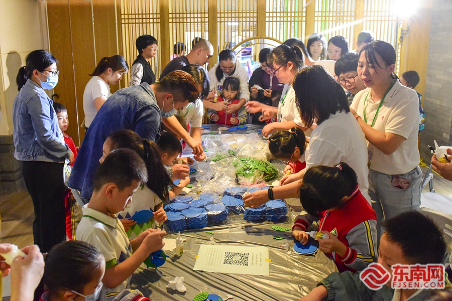 孩子和家长现场DIY“鲤小宝”挂件。东南网记者 林婕 摄