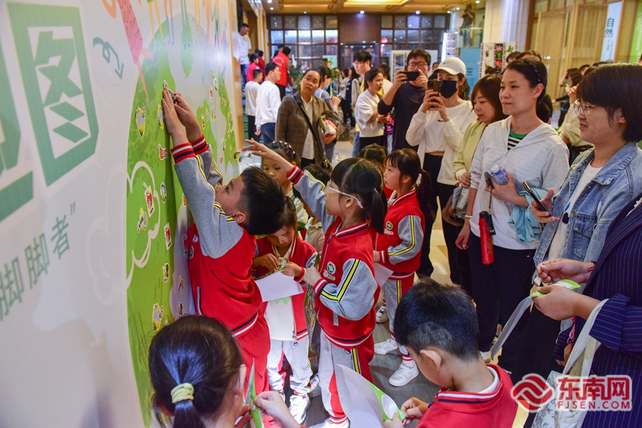 小朋友在泉州地图上贴上独属于自己的低碳行为贴纸。东南网记者 林婕 摄