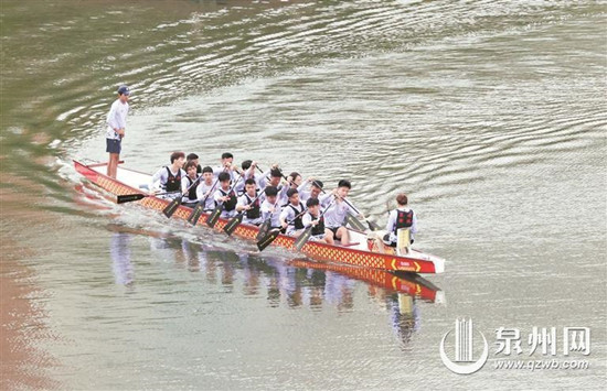 外教加入泉州师范学院龙舟队 外籍生首秀龙舟赛 感受中国过节氛围 同一时间,在泉州师范学院内的湖面,由学生组成的龙舟队也在奋力训练中,备战6月10日在惠安黄塘举行的“一带一路”青年龙舟国际邀请赛。值得一提的是,这支队伍不仅有中国学生,还有马来西亚籍、也门籍、美国籍及加拿大籍的学生和外教加入。 马来西亚籍学生嘉士运于去年9月到泉州师范学院就读。在选修了龙舟相关课程后,他对中国的端午文化很好奇。“在马来西亚,我们也过端午节,也吃粽子,也有赛龙舟,但不知道在中国体验赛龙舟是什么感觉,会不会氛围更浓厚?”怀揣着这份好奇,今年春节后,他得知学校要组建龙舟队,马上邀上其他马来西亚籍朋友们一起报名参加。 “队伍里有来自不同国家的队员,体验很不一样,感觉很惊喜。”嘉士运说,赛龙舟的过程很考验队员们之间的团队配合,对耐力、体力也是一种挑战。看到不同国家的队员们共同为了一个目标奋斗,并在合作交流中结下友谊,碰撞出新的火花,这让他觉得很有意思。“虽然每天都得早起,也花掉不少个人时间,但过得很充实,自己也变得更自律和自信了。”他迫不及待想要参加比赛,感受紧张刺激的比赛氛围,也希望在端午节期间能体验泉州的烧肉粽,感受一下闽南粽子与马来西亚娘惹粽有什么不同。 据泉州师范学院交通与航海学院副院长黄文燕介绍,去年9月起,校方将龙舟文化纳入校选课程,邀请校内外专业人士为学生普及龙舟知识,旨在发扬和传承龙舟文化,丰富学生的业余活动。今年春季开学后,校方以端午节龙舟赛为契机,组建了两支龙舟队,目前共吸纳队员60余名。