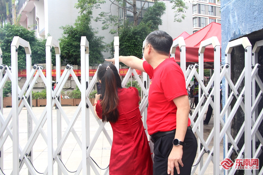 家长用手机记录下孩子进入考场的时刻。东南网记者 黄雨昕 摄
