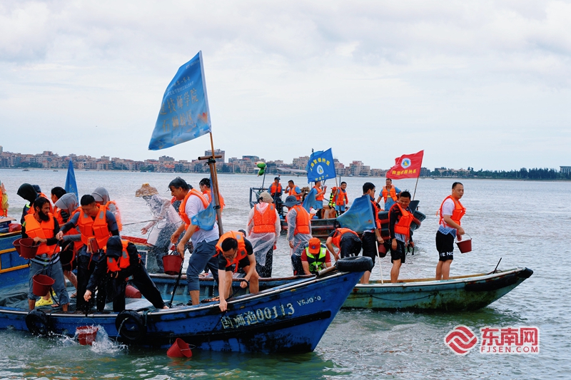 第十八届闽台对渡文化节暨蚶江海上泼水节活动现场。东南网记者 杜志鑫 摄