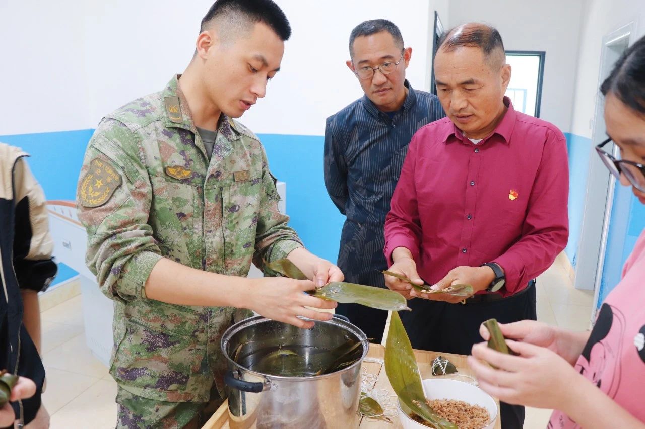 ▲开展党纪学习教育专题辅导讲座 端午节传统文化交流活动 扬传统 养正气 获新知 活动现场粽香弥漫、其乐融融。工作人员早早备好粽叶、糯米、五花肉等食材,军地党员干部们三五成群围在桌子旁,“取两片粽叶十字交叉,形成漏斗状,倒入糯米,不要装太满......”在部队“老师傅”的指导帮助下,大家边看边学,折粽叶、倒糯米、加调料、绑棉线等步骤有条不紊,一个个新鲜粽子在欢声笑语中逐渐成型。