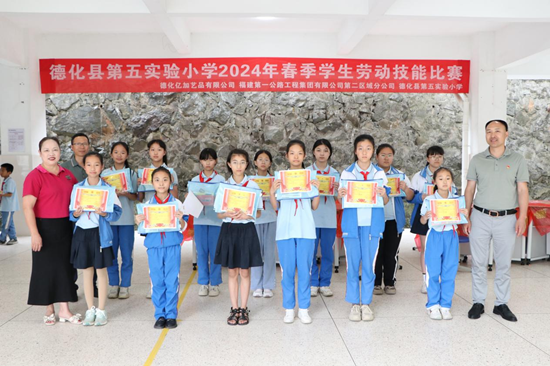 获奖选手喜获荣誉和奖品。学校 供图 该校领导表示,劳动系列比赛是一个寓教于乐的趣味项目,为同学们提供了一个大展身手的舞台,不仅提高了同学们的劳动技能和生活自理能力,还激发了同学们的创造力和团队合作精神。希望大家能够将所学所得应用到日常生活中去,为未来的成长打下坚实的基础。 德化县第五实验小学党支部书记涂培坤表示:“这场劳动技能比赛,为孩子们提供了一个实践锻炼、提升动手能力的平台。今后,我校将持续不断加强劳动教育赋能‘双减’,做到‘以劳树德、以劳增智、以劳强体、以劳育美’,促进学生的全面发展,奏响学校劳动与教育的‘共鸣曲’。” |