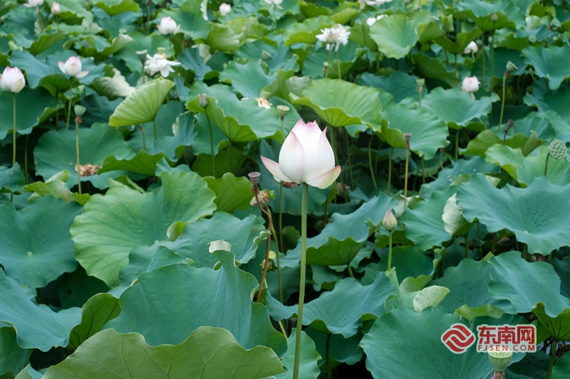 一株荷花含苞待放、亭亭玉立。林梦琳 摄