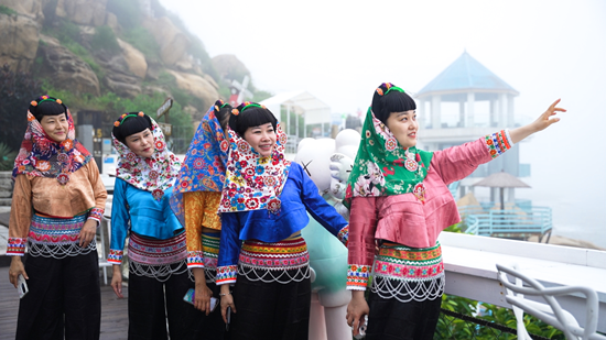 诗人身着惠女服饰,打卡惠女风情园(惠宣 供图) 反响热烈 “惠女文化”活了 “悠悠惠女,如玉清泉,德音孔宣,兰蕙猗妍……”6月13日下午,在惠女文化节活动现场,随着音乐响起,设计成诗歌卷轴的主舞台背景缓缓打开,吟唱着歌赋的惠女们从卷轴里款款走来,在诗歌之中穿梭,向来宾朋友们展现诗歌里的惠安,画面清新隽永、歌赋动人心弦。 活动现场,福建“三大渔女”惠安女、蟳埔女、湄洲女首次齐聚惠安,同台朗诵长篇诗歌《海的女儿》(节选);情景剧《百年风华》展现了惠安女服饰伴随惠安女一生的重要场景;《笠境繁花》惠女服饰秀以3大主题、56位模特,带领大家探寻惠女服饰的前世今生;压轴节目《最美的你》则是一首“惠女精神”新时代赞歌,唱出惠安女巾帼不让须眉的英姿飒爽。 此外,活动现场配套展示惠安女服饰和惠安民俗文化相关内容,包括“世纪惠安女”主题艺术作品展、“著名诗人写惠安”作品展、惠女服饰岁月长廊、银腰链/惠女服饰配饰展示区、“缀仔”百花墙、民俗展示墙和文创展示等,并同步展示蟳埔女、湄洲女服饰和习俗。舞台上、展区前、人群中,亮点纷呈的现场活动让人目不暇接。 当天,惠安还荣获“惠女精神”诗歌、文学双料创作实践地。同时,中国诗歌学会宣布正式启动“我为惠安写首诗”全国征文大赛,来自全国各地的诗人与诗歌爱好者,将以诗歌为桥梁,连接过去与未来,让“惠女精神”在新时代绽放更加璀璨的光芒,共同书写惠安的美丽与精彩。
