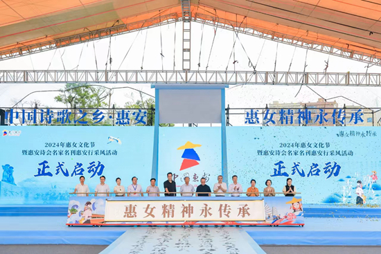 启动仪式(惠宣 供图) 大咖云集 “诗歌之乡”火了 以诗为媒,共叙雅韵。 “场场有非遗,处处是惠女,句句说惠安,堪称一场文化饕餮盛宴。”近日,惠安这场为期3天的“笠境浪歌 诗语惠安”主题采风活动,吸引了来自北京、安徽、云南、河北、江西等地60多位名家诗人前往参加,其中不乏鲁迅文学奖获得者。 在无匠堂艺术馆、雕艺文创园,名家诗人无不惊叹于惠雕的精美绝伦与工匠们的“巧夺天工”;在千年古刹净峰寺,探寻弘一大师足迹,品味净峰寺深厚的文化底蕴;在小岞特色展馆,感受原生态的渔耕惠女文化历史;在小岞惠女林场,倾听“沙滩变绿洲”的先进事迹,为爱拼敢赢、勤劳勇敢的惠安女点赞;在崇武古城内,访古迹、寻历史、品海丝,沉浸式感受惠安浓郁淳朴的海洋文化、屯兵文化、渔家文化;在惠女风情园,名家诗人纷纷跃跃欲试,亲身体验惠安女服饰,饶有兴致地合影留念…… “惠安在我的心中已经很久了,终于得此一游,发现惠安不仅是一片美丽的土地,更是我们文化的沃土。” “惠安给我的感觉是非常美好的,山好、海好、人更好。” “惠安多元丰厚的文化和悠久的历史,有很多的亮点,值得我们的作家、诗人前来走走看看,书写、传播‘惠女精神’。” 期间,名家诗人纷纷被奇而不俗、艳而有韵的惠女文化,半城青山、半城碧海的惠安风光以及百转千回、韵味独特的惠安故事所折服,也频频点赞“中国诗歌之乡”——惠安。 “惠安诗会的举办,为我们搭建了一个交流思想、碰撞灵感的平台,让来自五湖四海的诗人、作家能够在此共享文学之美,共谋文学发展之未来。此次活动不仅是对惠女文化的传承和探索,是对中华优秀传统文化的一次深情致敬,更是对惠安乃至中国东南沿海文化软实力的有力提升。”中国作家协会副主席、第十三届全国政协常委、国家非遗领导小组专家委员会副主任白庚胜对采风活动盛赞不已。