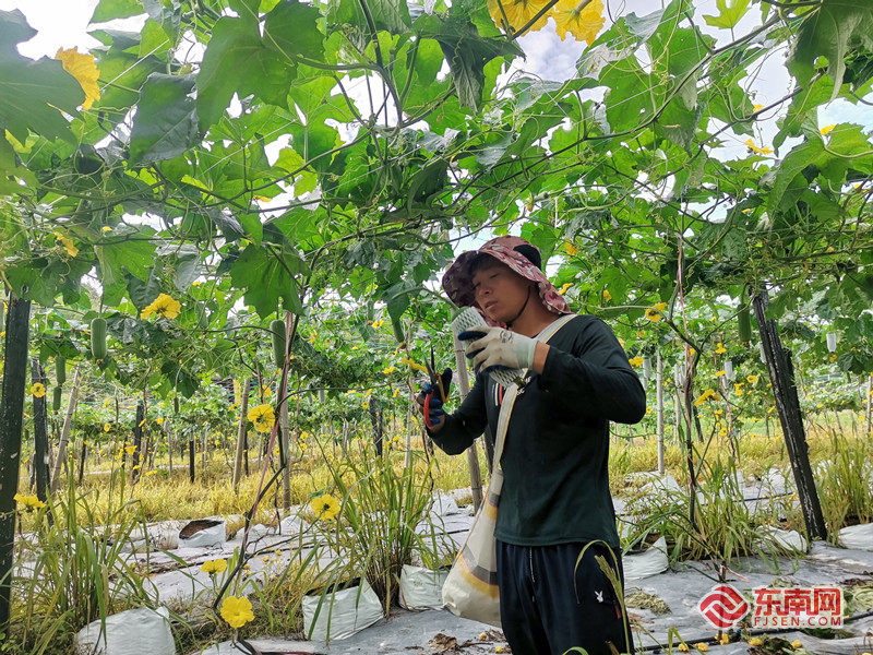 农户在忙碌采摘丝瓜。郑智得 供图