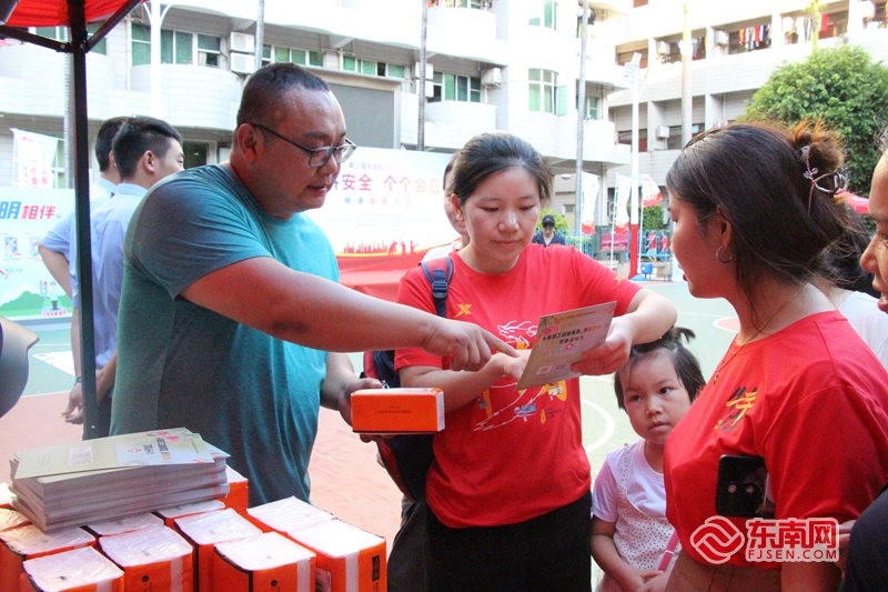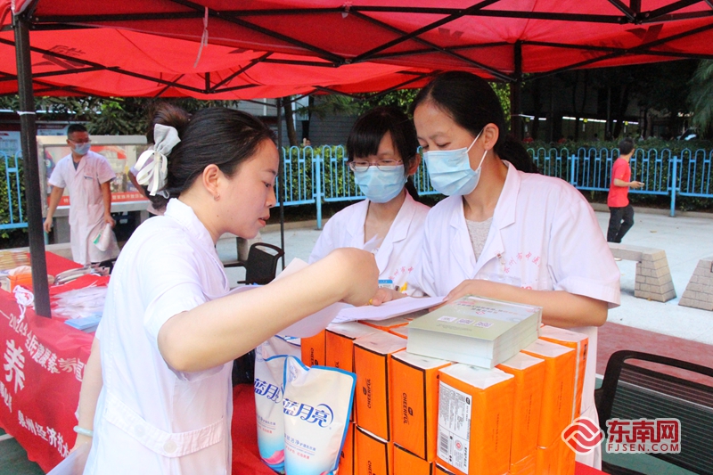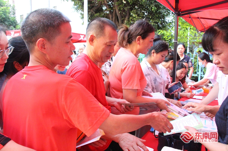 职工们积极领取健康知识“大礼包”。东南网记者 黄雨昕 摄