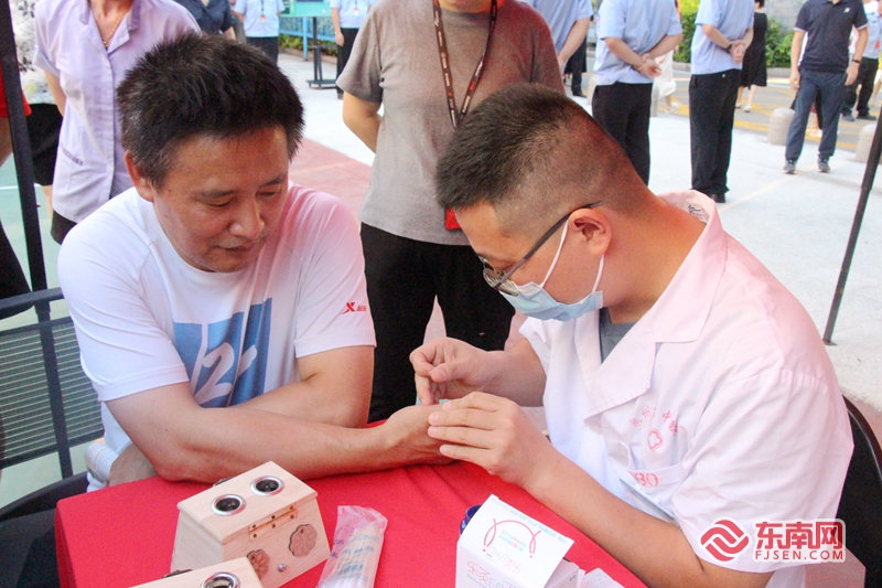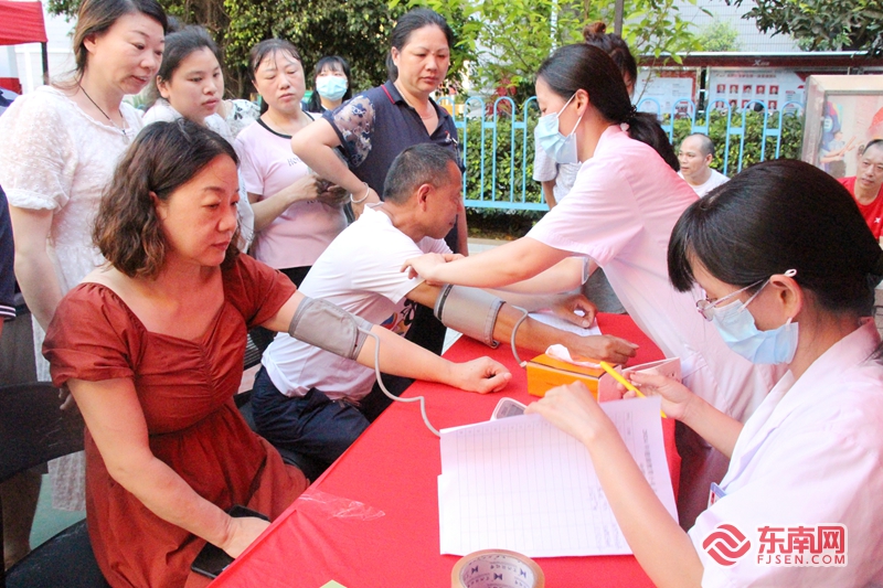 医护人员免费为职工们测量血压。东南网记者 黄雨昕 摄