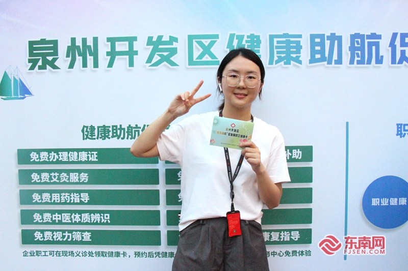 企业职工展示自己刚领取到的“健康助航”促发展健康卡。东南网记者 黄雨昕 摄