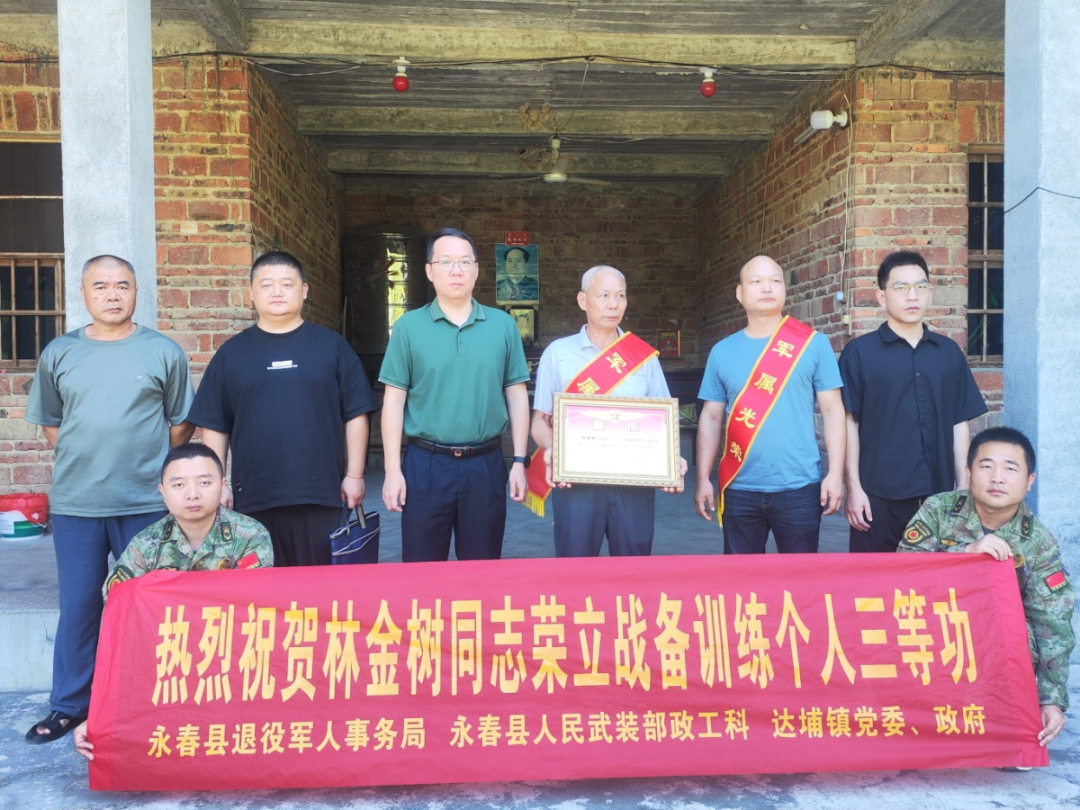 为进一步弘扬拥军优属光荣传统,营造“一人参军、全家光荣”的尊崇氛围,近日,永春县退役军人事务局联合永春县人武部政工科、达埔镇人民政府到达山村为荣获三等功的现役军人林金树家庭送去三等功喜报。
