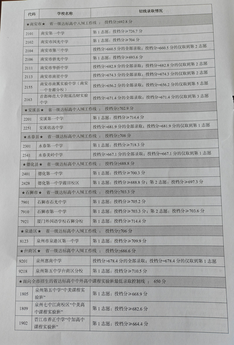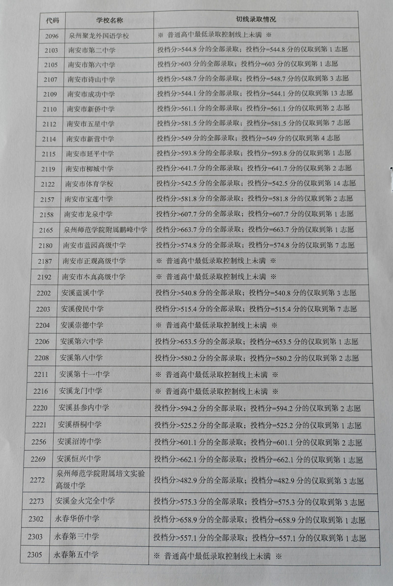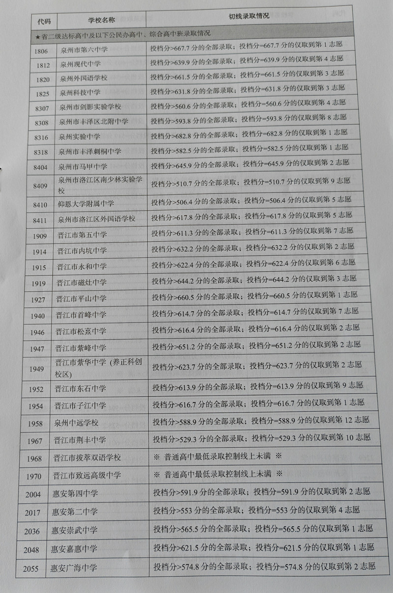 2024年泉州普通高中招生切线公布 普高最低录取控制线482分