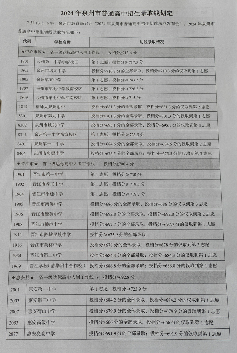 东南网7月13日讯(本网记者 施远圻)今天下午,泉州市教育局召开2024年泉州市普通高中招生录取切线发布会。今年,泉州市普通高中最低录取控制线为482分,其中泉州五中统招录取分数743.2分。