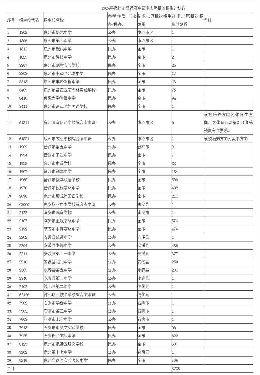 2.按照《2024年泉州市初中毕业升学考试和普通高中招生工作方案》规定,征求志愿批次的综合高中班在普高最低录取控制线上未录满的,予以降分至普高最低录取控制线下30分以内(含30分)录取。