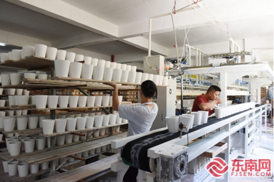 双滚头自动滚压机,可同时生产两种不同器型。林婉清 供图 东南网7月17日讯(本网记者 林婕 通讯员 林婉清)2022年11月,福建省工信厅等七部门联合印发了《支持“中国白·德化瓷”产业高质量发展的若干措施》(以下简称《措施》),以“含金量”颇高的10条项政策措施,持续推动产业强链补链延链,支持陶瓷企业大力开发新产品、新装备、新材料、新技术、新工艺,促进产业高质量、可持续发展。 自《措施》印发以来,德化县加快构建以陶瓷产业为主的现代化产业体系,持续推动产业强链补链延链,培育形成了出口工艺瓷、日用家居瓷、大师艺术瓷等陶瓷产业集群。2023年,德化陶瓷产业集群规模达577亿元、增长14.9%,先后被工信部、商务部授予国家级中小企业特色产业集群、全国消费品工业“三品”战略示范城市、全国区域(城市)产业名片打造首批试点、全国县域商业领跑县、国家新型工业化产业示范基地等多项国家级称号;今年1—5月,陶瓷产业完成产值275.5亿元,同比增长17.01%。 陶瓷产业向智能化绿色化转型 在佳诚陶瓷有限公司生产车间,智能化生产场景随处可见,全(半)自动生产线和自动上釉机等智能化设备,全部开足马力加速运转,从注浆、成型、上釉……整个生产工序一气呵成;展厅内,各式各样的陶瓷花盆和家居摆件等琳琅满目。近期,该企业得到智能制造示范项目奖励30万元、市级龙头企业增产增效奖励3万元。 佳诚陶瓷有限公司成立于2002年,主要生产陶瓷花盆和家居用品等,出口占比高达90%,产品远销世界100多个国家和地区。近年来,佳诚陶瓷瞄准“数字赋能”“节能降碳”两大赛道,不断优化生产工艺,降低能源消耗和排放,积极推动循环经济发展,实现资源的高效利用。 “使用智能化设备,生产速度比人工快3倍不止,产品质量也更好。”佳诚陶瓷经理覃安奎介绍,目前公司拥有全自动生产线4条、半自动生产线8条,以及自动上釉机、自动喷色机等数字化智能设备,其中一条双滚头自动滚压机,可同时生产两种不同器型,便于灵活安排生产。 除了使用自动化生产设备,窑炉改造也是绿色化发展的重要一环。覃安奎告诉记者,至2020年公司完成窑炉改造,由立方窑全部改为66米隧道窑,每天烧制量从30方提高到100多方,用电量可节省30%以上。烧窑的热量也不浪费。隧道窑的余热经尾部的管道输送到干燥车间用于烘干瓷坯,“利用隧道窑余热仅需要5个小时就可烘干,而自然风干则需要3天。”覃安奎说。 记者从德化县工信商务局获悉,该县持续推进企业创新发展,一方面推动科技创新计划,支持企业走数字化道路,推广自动化、信息化、智能化成型生产线设备或运用场景664台(个),推动企业上云上平台超600家,规上陶瓷企业智改数转率达95%以上。另一方面助力企业节能降耗,持续实施“绿色数字技改”专项行动,用好陶瓷智能装备研究院,引导207家次陶瓷企业在窑炉燃烧控制、实时监控方面进行窑炉改造降低废品率,提升节能降耗水平,规上工业单位增加值能耗下降率26.2%。 5.62亿元“技改贷” 惠及企业48家 “这是圣诞系列、这是复活节系列、这是一些动漫品牌……”在鑫城美陶瓷样品间内,各种卡通人物在水晶球和工艺品摆件中活灵活现,这些产品是鑫城美陶瓷开拓市场的“主力军”。生产车间中,处处可见忙生产、赶订单的火热场面,2024年圣诞系列的陶瓷产品正在开足马力赶制中。 鑫城美陶瓷是一家综合性企业,设计、制造和销售高品质的日用瓷、工艺瓷和树脂工艺等产品,年生产陶瓷超过2000万件;各种节日相关的礼品,花园相关的摆件销往美国、英国、意大利、荷兰、瑞典、德国、日本等20多个国家;与迪斯尼、星巴克、哈利·波特、泡泡玛特、史努比等十多个国际知名品牌、IP建立良好合作关系,成为主要优质稳定供货商…… “今年1-6月份,产值比去年同期增长了20%。”公司总经理何志英说,这得益于公司持续不间断的技术提升和改进,得益于技改的落地转化。去年5月份,鑫城美陶瓷通过“技改贷”获得990万元贷款,第一年的月利息1.8%。利用这笔贷款资金,公司不仅扩大生产投资,还对生产设备和技术进行改造升级,产能不断扩大。“手续便捷、利率优惠,提交贷款申请,不到一星期就放款了,用最短的时间、最低的利率解决了我们的资金需求。”何志英由衷点赞。 “技改与创新相辅相成,是加快企业转型升级、提质增效的重要手段,更是实现创新成果转化、保证产品质量的重要途径。”县工信商务局工作人员陈泽清说,去年全县享受“技改贷”5.62亿元,惠及企业48家。 近年来,在一系列惠企政策的支持下,德化县一大批陶瓷企业持续加大投入,积极实施技改项目,通过采用新技术、新工艺、新设备等实现技术升级进步、提高产品生产效率等,助推企业走上高质量发展“快车道”。 2023年,德化县恒宇工艺品有限公司年产300万件免烧可降解陶瓷基陶瓷智能生产线建设等40个项目列入省市重点技改投资项目,总投资29.57亿元;全年工业技改投资35.45亿元,增长24.4%。今年,德化县计划实施工业技改项目120个以上,根据目前摸底情况,预计总投资80亿元。