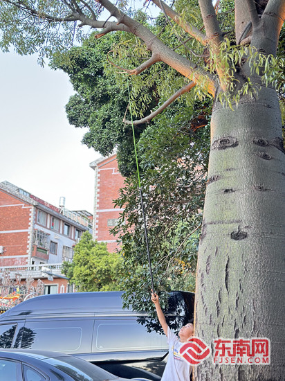 天气炎热,阻挡不了童趣,少儿正在抓捕知了。东南网记者 陈诗婷 摄