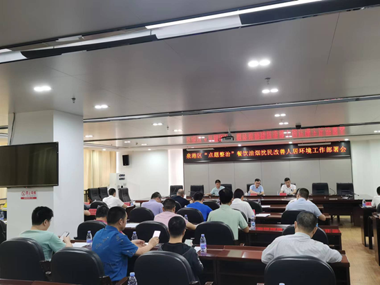 泉港区餐饮油烟“点题整治”工作部署会 自“点题整治”工作开展以来,泉港区城管局共出动执法人员1800余人次,采取“边摸排、边宣传”的形式,对辖区内餐饮店是否安装油烟净化器、油烟净化器是否正常使用、是否安装油水分离器等进行全面检查,目前共排查947家餐饮店,发现整改40余个油烟扰民问题,对发现的问题当场责令整改并督促落实。同时,对餐饮店负责人普及餐饮油烟治理相关法律法规,引导餐饮店负责人认识到餐饮油烟污染的危害性。