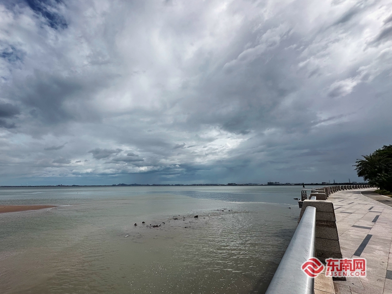 记者在泉州市区东海,这里已经刮起阵阵大风,天空中乌云涌动。东南网记者 林婕 摄