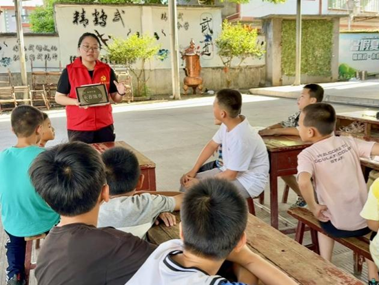 实践队员开展非遗小课堂教学 东南网7月25日讯(通讯员 阙彰延)为传播弘扬永春非遗文化,丰富当地小学生假期生活,近日,福州工商学院文法学院“蒲风永续”非遗传承实践队赴永春开展“传递非遗魅力、共享教育成果”支教实践活动。 队员们来到永春县精鹤武夏令营,为夏令营的孩子们举办了非遗小课堂,生动形象地介绍了永春的纸织画、醋、香等非遗文化,让孩子们近距离感受非遗魅力。 在实践过程中,队员们在永春县达埔镇蓬莱村党支部书记的带领下,组织孩子们参观永春老醋博物馆,通过他的生动解说,大家深入了解了永春老醋非遗文化的起源与发展,深刻感悟了闽南的悠久历史文化。