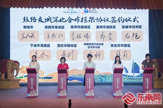 签约仪式。鲤城区融媒体中心 供图 活动现场,福建泉州市鲤城区、广东潮州市湘桥区、河南洛阳市老城区、陕西西安市碑林区、甘肃张掖市甘州区、甘肃酒泉市敦煌市、新疆维吾尔自治区吉木萨尔县、山东青岛市市南区、浙江宁波市海曙区9城以线上线下联动的方式共同签订丝路友城共建合作框架协议。此次签约,既有“老朋友”再续丝路情缘,也有“新朋友”加入联盟大家庭,今后,联盟将继续秉持共商共建共享的原则,进一步深化友好合作,推动互利共赢、协同发展,为共建“一带一路”倡议注入新动能。 随后,现场还进行了签约仪式,鲤城文投集团与爱斯旅游公司,鲤城区文旅局与斯里兰卡庙树度假村,鲤中街道与椰子树餐饮连锁集团,临江街道与马尔代夫荣誉俱乐部集团签订合作协议。今后,签约各方将围绕旅游资源、旅游产品、特色旅游IP等方面开展全方位合作,共同推动两地旅游业发展。 当晚,“刺桐·1459-2024·鲤城”斯里兰卡之夜实景互动式演出精彩上演。“丰年人乐业,月下踏歌行。今晚受王子殿下的邀请与各位贵宾月夜相聚,实乃人生一大幸事。”在两名提灯侍女的指引下,“泉州知府”和“科特王子”登场,他们一边品茶赏乐,一边观赏充满异域风情的斯里兰卡舞蹈、闽南特色的拍胸舞和南音、悠扬婉转的洞箫独奏等表演,一幅声色十足的“夜宴图”徐徐展开。 |